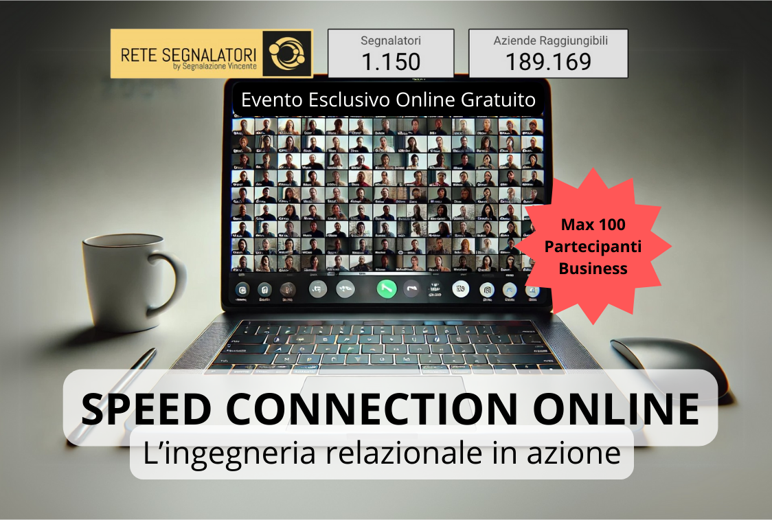 E' con questo spirito che ti invitiamo a partecipare a Speed Connections Online e sperimentare come si mette in pratica il "passaparola business" di qualità in soli 90 minuti. Ecco le caratteristiche salienti dell'evento GRATUITO a cui sei invitato: